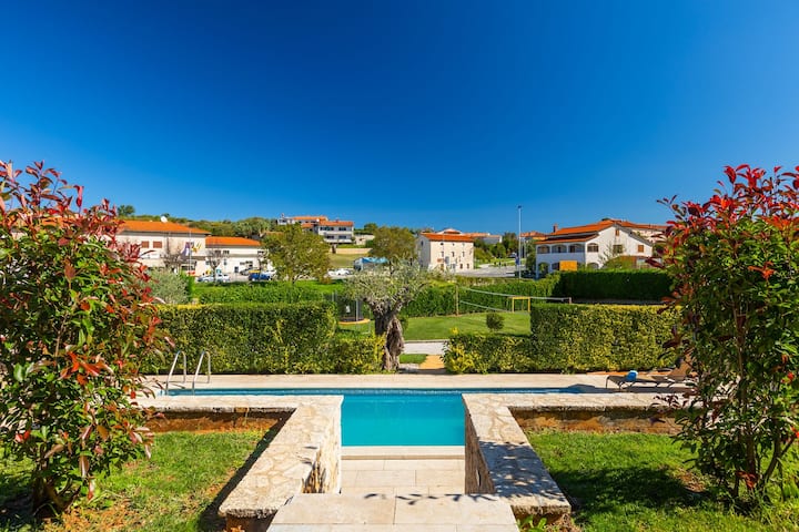 Nyumba ya likizo ya kupendeza iliyo na bwawa la kujitegemea, volley