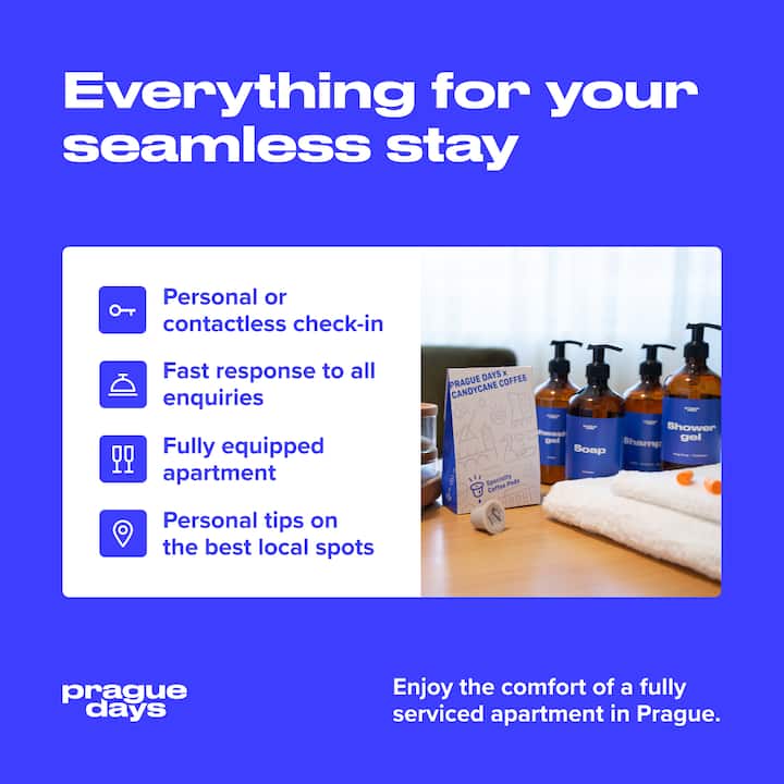 Katika Prague Days, tunaamini katika kutambua nyuso zinazojulikana, kukaribisha mpya na kumchukulia kila mgeni kama rafiki. Kuanzia kuingia kwa urahisi, kunakoweza kubadilika hadi orodha iliyobuniwa kwa uangalifu ya mapendekezo ya maeneo ya kuona na kutembelea, tunaongeza mguso binafsi kwa kila kitu tunachofanya kwa ajili ya wageni wetu. Tangu mwaka 2016, tumekaribisha makumi ya maelfu ya wageni wenye furaha na kila siku tunajitahidi kufanya ukaaji wako huko Prague uwe wa kukumbukwa.