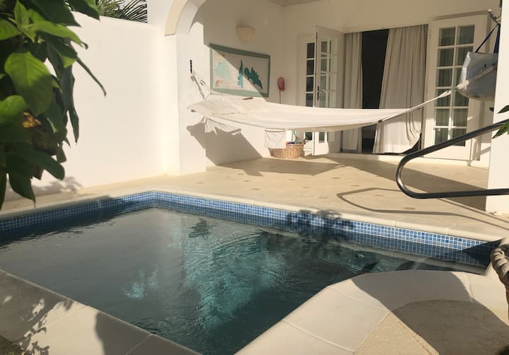 Kuna mabwawa mawili - bwawa la maporomoko ya maji, ambalo ni umbali wa dakika moja kutoka kwenye nyumba na bwawa la nyumba ya kilabu, bwawa lisilo na kikomo, ambalo lina mwonekano mzuri wa pwani ya Magharibi na liko umbali wa dakika 2 kutoka kwenye nyumba. Karibu na bwawa kuna mgahawa wa kilabu – pamoja na Sugar Hill. Ikiwa umechoka sana kupika unaweza kwenda huko au wanaweza kukupangia mapumziko. Hakuna kitu kizuri zaidi baada ya mchezo wa tenisi au kumaliza yoga, kukaa nje kwenye baa huko Sugar Hill au roshani ya Coco House , kuwa na glasi ya waridi na kutazama machweo! Kuna viwanja vinne vya tenisi vya michuano ya mafuriko kwenye viwanja, ukumbi wa mazoezi ulio na vifaa kamili na mafunzo ya yoga/pilates kwenye nyumba ya kilabu.