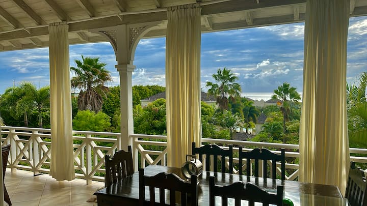Tuliponunua nyumba hiyo usanifu wa nyumba na mandhari ndiyo tuliyoipenda. Dari za juu, vizuizi vya mashamba na matumizi ya mawe ya matumbawe ya eneo husika na marumaru hufanya iwe furaha ya kweli kuwa ndani na kutazama. Ni nyumba angavu na yenye hewa safi. Roshani pana inatoka na kutazama mwonekano wa digrii 180 wa Bahari ya Karibea na kwa sababu uko juu, si moja kwa moja ufukweni, unapata mwonekano mzuri wa bahari na machweo mazuri (tazama tathmini). Tuna bahati kwamba hakuna nyumba moja kwa moja mbele ya nyumba kwa hivyo tuna machweo mazuri na mandhari ya bahari.