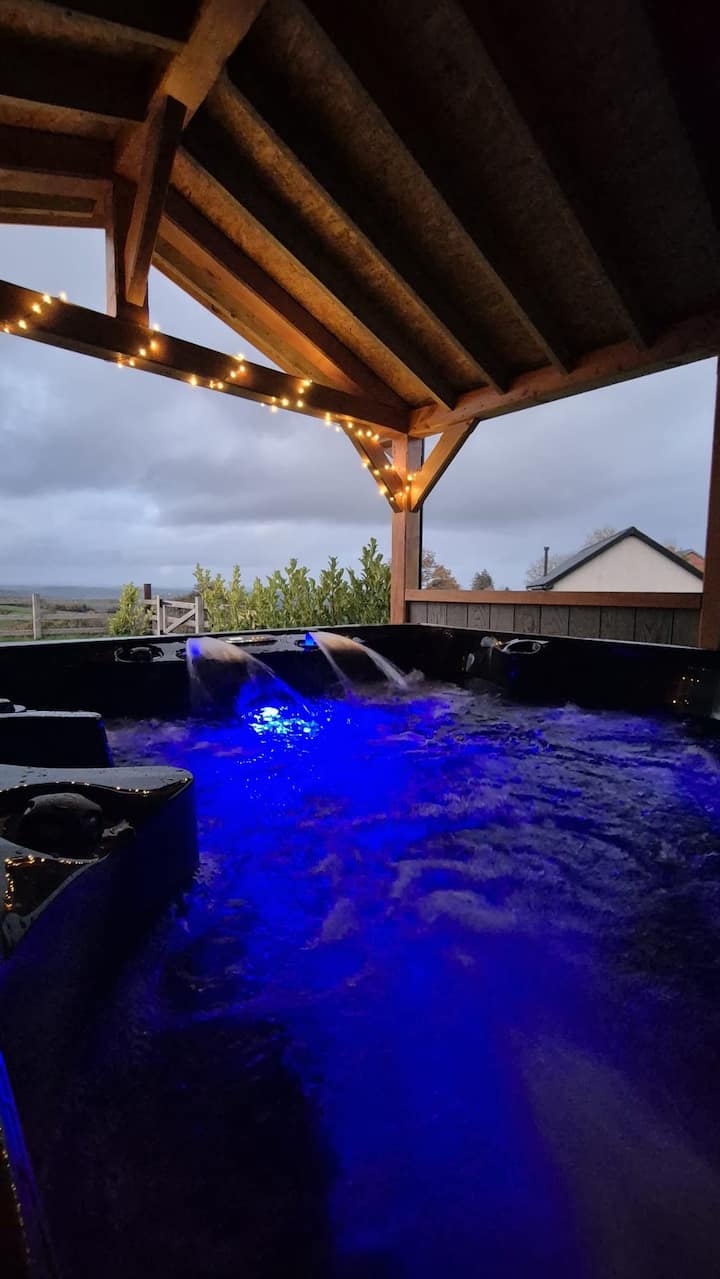 Toka kwenye baraza la kujitegemea ili ufurahie mandhari ya amani mashambani kote. Kunywa kahawa yako ya asubuhi, furahia kinywaji cha jioni, au pumzika kwenye beseni la maji moto la watu sita chini ya nyota.