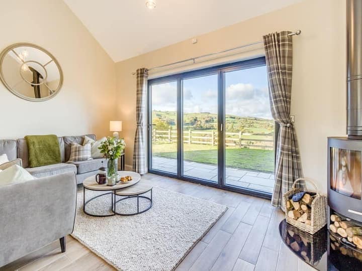Kimbilia The Lara, nyumba ya kupanga yenye vyumba vitatu maridadi na yenye nafasi kubwa iliyowekwa katika eneo la mashambani la Mid-Wales lenye kuvutia. Milango mikubwa miwili inafunika mandhari inayozunguka, ikijaza sehemu ya kuishi iliyo wazi kwa mwanga wa asili.