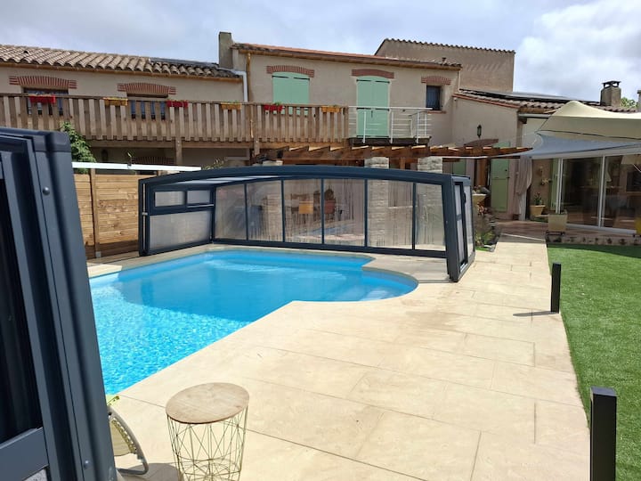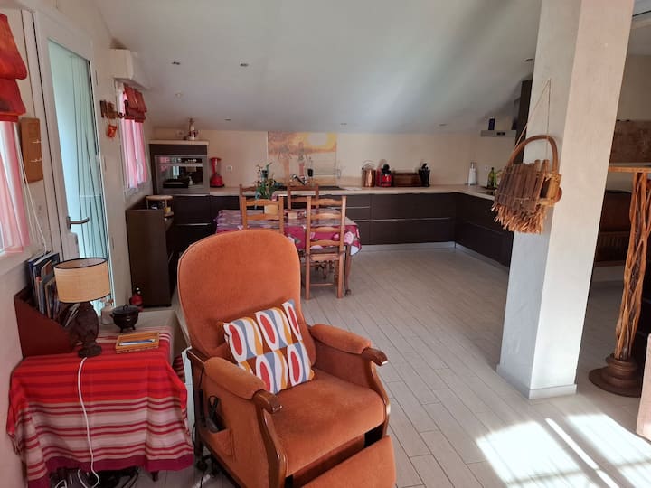 Dakika 15 kutoka ufukweni, Jiwazie katika fleti kubwa kwa ajili ya ukaaji, katika jua la kusini mwa Ufaransa. Eneo hili la kirafiki, tulivu na tulivu, linalofaa kwa wale wanaotafuta kupumzika na kuepuka shughuli nyingi za maisha ya kila siku karibu na bwawa.