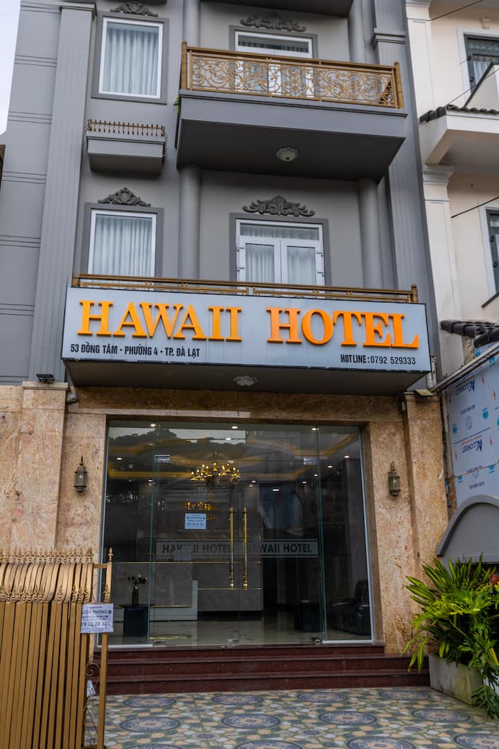 Hoteli ya Hawaii Dalat iko karibu kilomita 2 tu kutoka soko la usiku la Dalat na inafaa kwa maeneo ya watalii. Hoteli yetu ina lifti, eneo la maegesho, mapokezi saa 24, jiko la jumla na Wi-Fi ya bila malipo. Tunatoa huduma ya kufulia, uhamishaji wa uwanja wa ndege, kukodisha pikipiki, ziara,... huduma. Karibu kwenye Hoteli ya Hawaii Dalat !