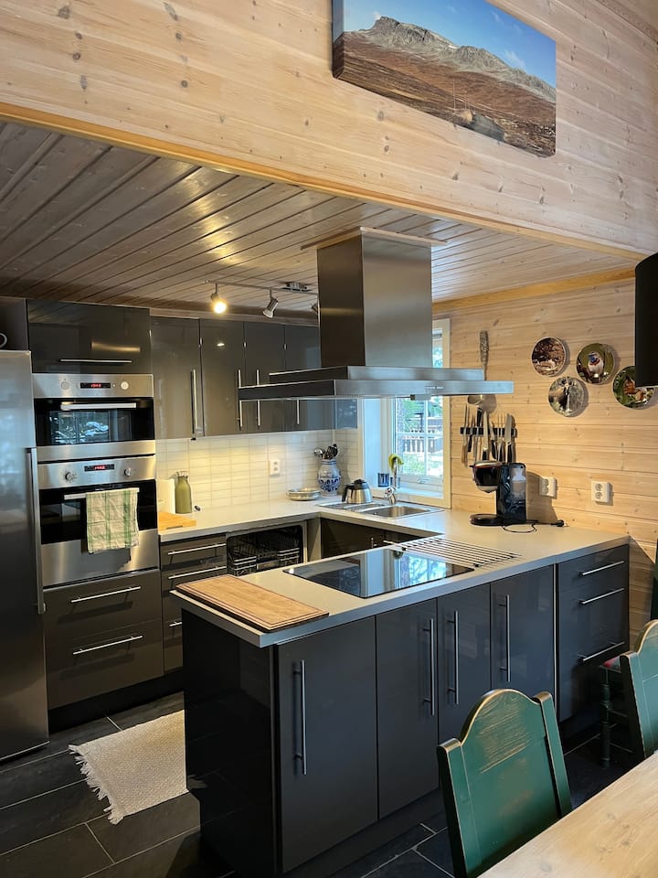 Umbali mfupi hadi kwenye njia za kuvuka nchi, kama vile Myrland na Raggsteindalen, takribani dakika 10 za kuendesha gari. Karibu na nyumba ya mbao kuna reli nyepesi yenye starehe iliyo na lavvo, benchi na uwanja wa michezo kwa ajili ya watoto wadogo. Unaweza kupiga kamba kwenye viatu vya matembezi au kuteleza kwenye barafu nje ya nyumba ya mbao!