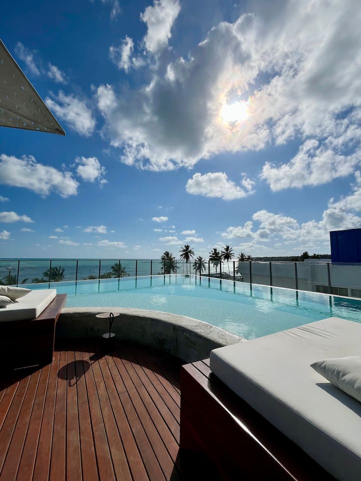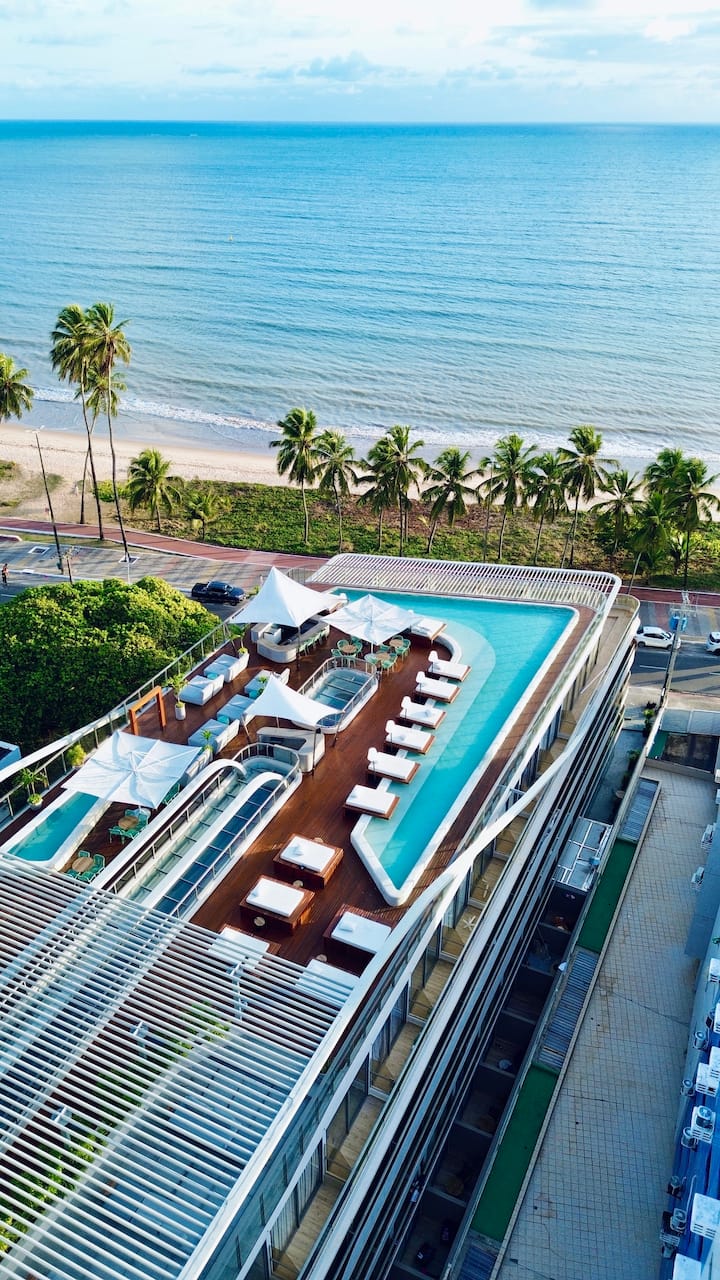 Kaa kwenye anwani inayotamaniwa zaidi ya João Pessoa, katika kitongoji cha Cabo Branco. Furahia barabara iliyofungwa kwa ajili ya magari hadi saa 8:00 asubuhi, bora kwa matembezi tulivu na kuendesha baiskeli. Baiskeli, viti vya ufukweni na vimelea vinapatikana kwa ada ndogo, ili kuhakikisha unafurahia kila wakati.
