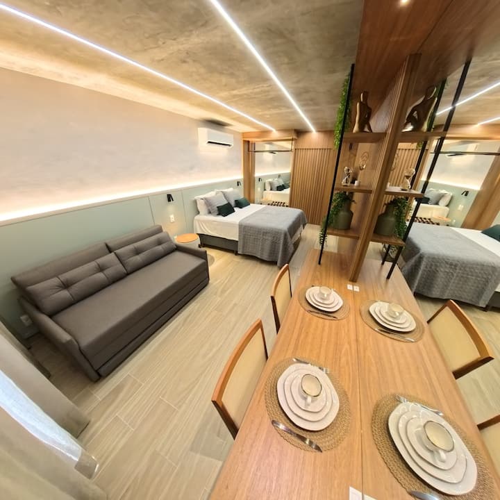 Setai Yacht #231 ni likizo ya kipekee iliyo kwenye ufukwe wa Cabo Branco, mojawapo ya vitongoji vinavyotamaniwa zaidi vya João Pessoa. Fleti hii ya m² 26 hutoa mchanganyiko kamili wa hali ya juu, starehe na vitendo, bora kwa wale wanaotafuta sehemu ya ubora wa juu ya kupumzika au kutalii jiji. Iliyoundwa ili kutoa huduma bora ya ukaaji, fleti hiyo ina samani kamili na inatoa vistawishi kadhaa.