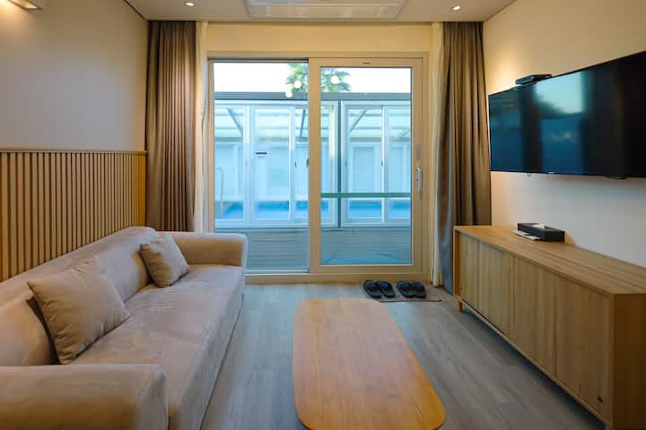 Jeju East_Pool Villa (watu 5/kima cha juu cha 6)_Vitanda 2 vya Malkia + Kitanda 1 cha Mtu Mmoja + Mabafu 2 + Sebule + Bwawa la Kujitegemea (Bwawa la Pamoja Linapatikana)