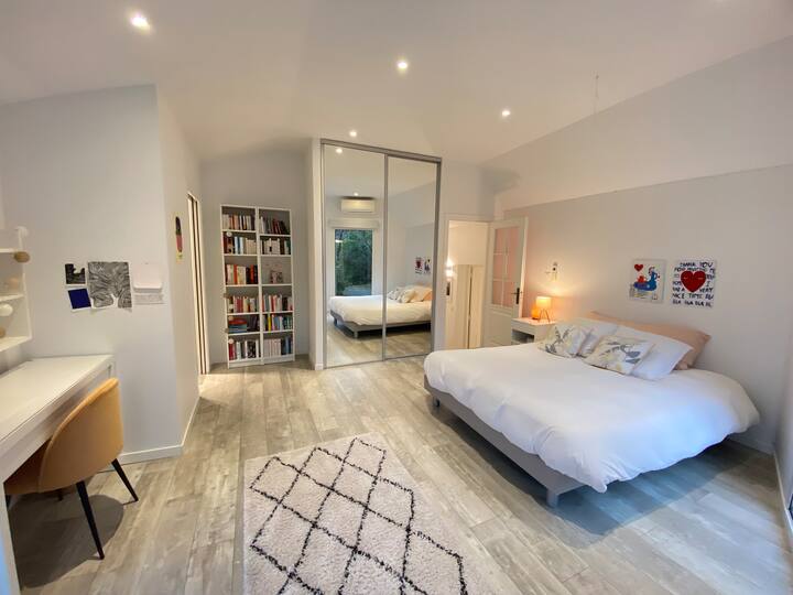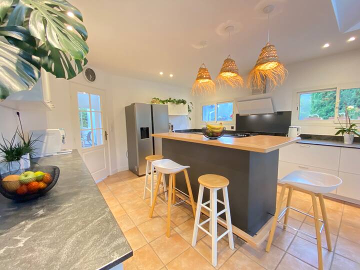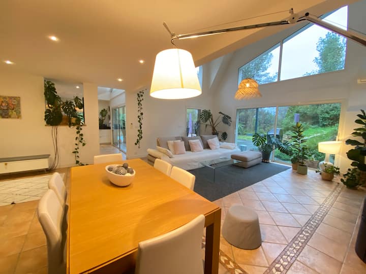 Vila nzuri ya kisasa iliyo na bwawa na bustani