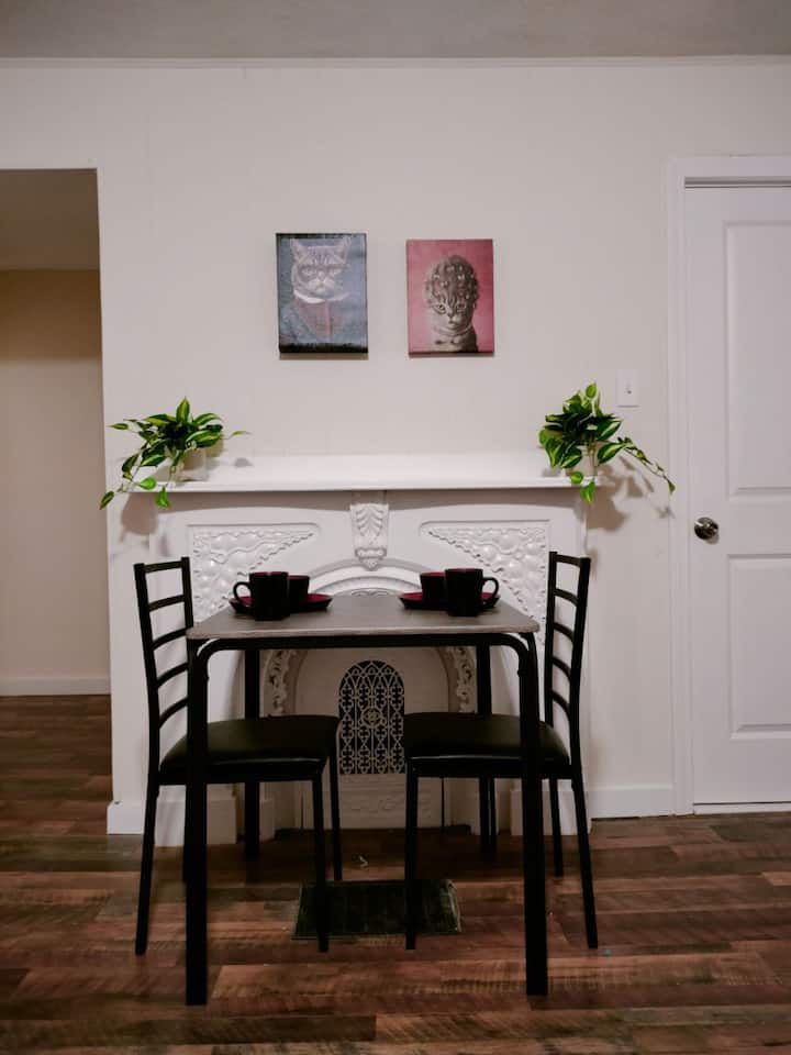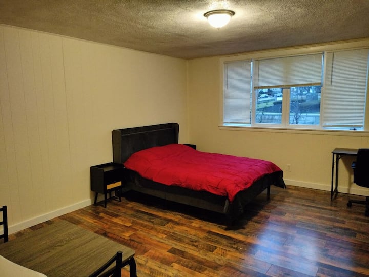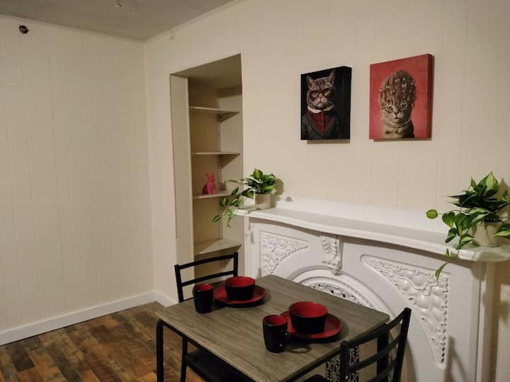 Studio nzuri na yenye starehe, ghorofa ya 1, karibu na T, maegesho ya bila malipo