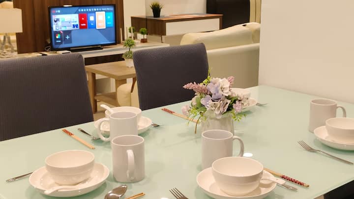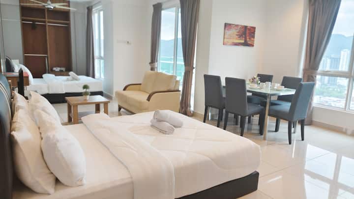 Pumzika katika sehemu hii angavu na yenye nafasi kubwa, inayofaa kwa wasafiri wa matibabu, wageni wa muda mrefu na wageni wa kibiashara. Sehemu hii iko dakika 5 tu kutoka Kituo cha Matibabu cha Gleneagles, inatoa sehemu ya kukaa yenye amani na starehe yenye mandhari ya kupendeza ya jiji na bahari.