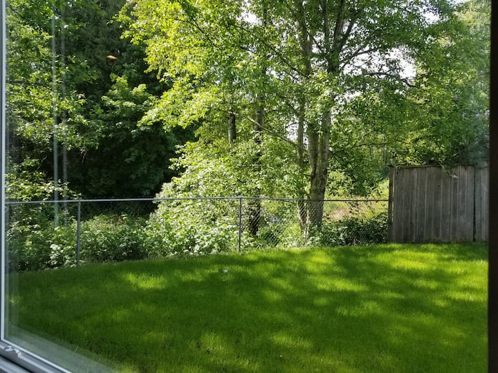 Chumba chetu hakiko tu na vifaa vya kutosha, pia kina eneo zuri huko Langley:. Tuko karibu na mtandao mpana wa njia ambao unapita msituni na unaongoza kwenye mabwawa ya bata, viwanja vya michezo, bwawa la nje na mbuga ya maji. Tuko umbali wa dakika chache tu kutoka kwenye maduka ya vyakula, ununuzi na mikahawa.