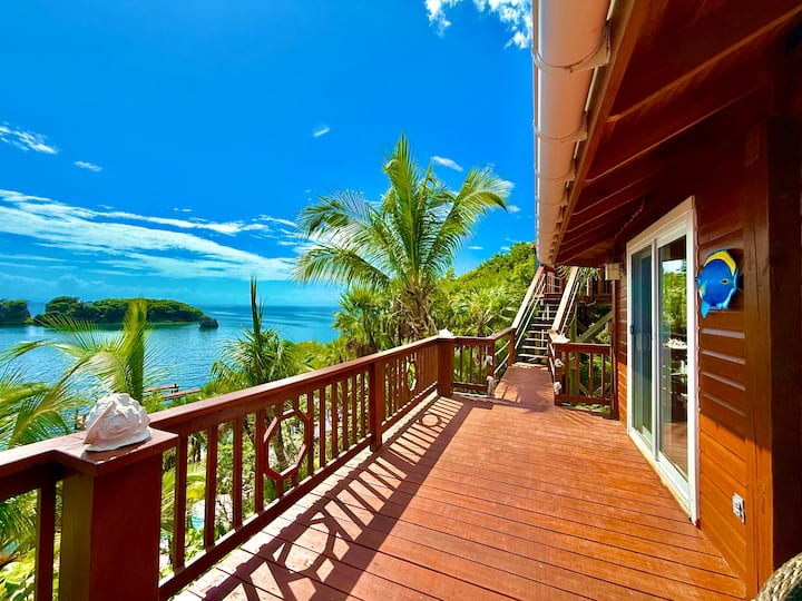 Anza siku yako na mawio ya jua juu ya mwamba na uanguke na machweo mazuri kutoka bandarini. Kuogelea kwenye eneo maarufu la kuogelea la Ng 'ombe na Ndama-moja ya vito vya mashariki vilivyofichika-au kufurahia tu miamba ya matumbawe iliyojaa maisha kwenye ua wako wa mbele. Iwe unatafuta upweke wa kisiwa cha Karibea kwa amani kwa kutumia boti pekee, au jasura za ajabu za bahari, hii ni likizo yako binafsi ya Roatan.