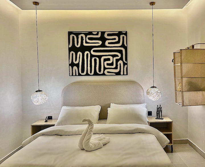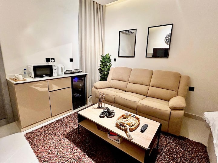 Studio ya kisasa iliyo na kiingilio mahiri na jiko