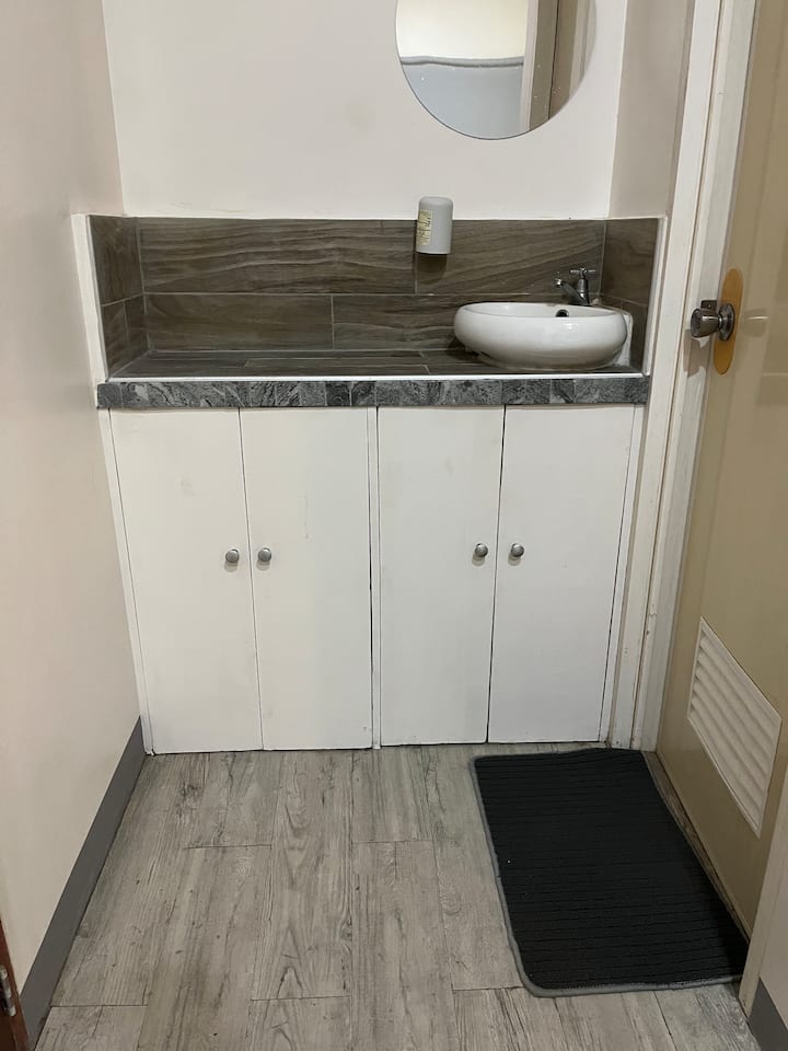 Sehemu hii ina bafu ambalo limeunganishwa na chumba chako.