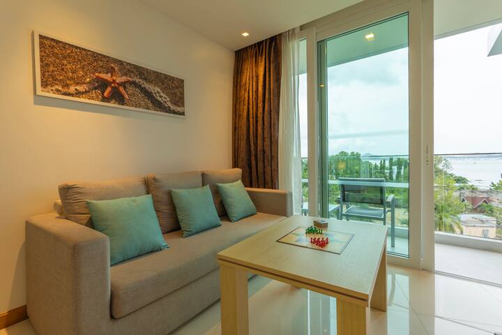 Amka upate mandhari ya kuvutia ya bahari na uingie kwenye bwawa kutoka kwenye fleti yako ya kifahari! Inafaa kwa wanandoa au familia, kito hiki chenye starehe kina kitanda cha watu wawili, bafu la kujitegemea, televisheni ya skrini bapa na salama. Kunywa kokteli kwenye baa ya ufukweni, tulia kando ya bwawa, au uende kwenye ukumbi wa mazoezi. Hatua tu kutoka Chalong Beach na maeneo ya juu ya Phuket. Weka nafasi ya likizo yako ya kitropiki sasa! ๐๏ธโจ