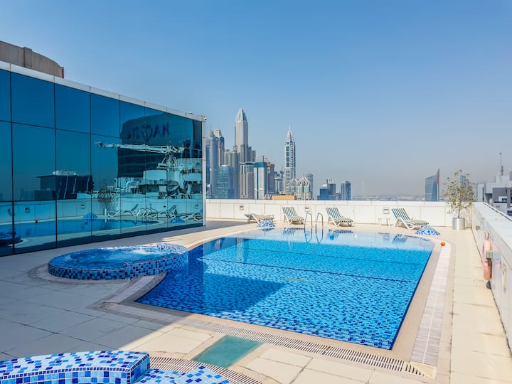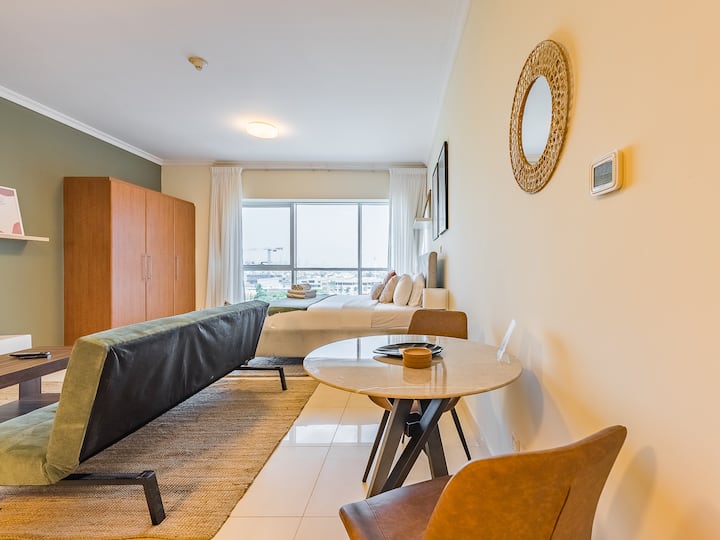 Iwe uko mjini kwa ajili ya biashara au burudani, studio hii iliyobuniwa kwa uangalifu katikati ya JLT ni mchanganyiko kamili wa starehe, mtindo na utendaji.
