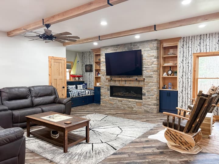 Karibu kwenye likizo yako binafsi ya kifahari katikati ya Msitu wa Kitaifa wa Daniel Boone – matembezi mafupi tu (maili 0.9) kwenda Holly Bay Marina na njia ya boti. Iwe wewe ni familia, kikundi cha marafiki, au mpenda ziwa anayetafuta kupumzika katika mazingira ya asili bila kujitolea starehe, nyumba hii mpya iliyojengwa inatoa mchanganyiko kamili wa vistawishi vya kisasa na haiba ya jangwani.