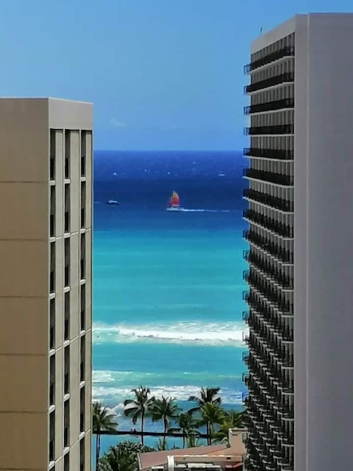 Ocean View 600sf chumba 1 cha kulala, roshani, katika kondo-tel