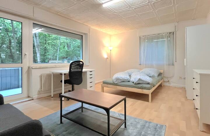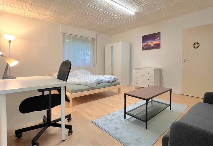 Furahia haiba ya zamani ya fleti hii ya kitaalamu. Chumba angavu kinachoangalia malisho kutoka kwenye bustani🌳 Pia una roshani yenye mwonekano mzuri kwa ajili yako