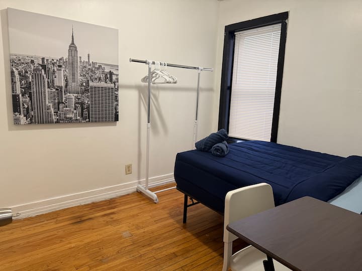 Kuna kitanda 1 cha ukubwa kamili katika chumba cha kulala cha kujitegemea katika fleti ya pamoja. Unaweza kutumia jiko la pamoja na bafu .