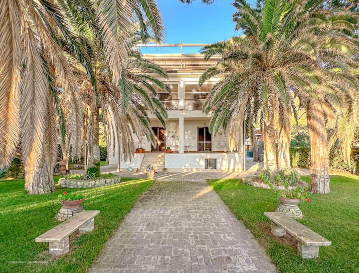 Vila hiyo imezungukwa na bustani kubwa ya kujitegemea, iliyojaa mitende, misonobari ya baharini na mimea ya Mediterania, ambapo ukimya na harufu ya bahari huandamana na kila wakati wa siku.
