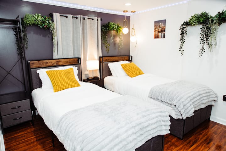 ▶ Kulala kwa usiku wenye utulivu: Kitanda aina ya King katika Chumba Kikuu cha kulala. Plus 2 Twin XL (inaweza kuunganishwa kuwa kitanda cha 2 king pia) katika Chumba cha pili cha kulala cha kupendeza. Pia una kitanda cha sofa ya kulala (ukubwa kamili) sebuleni.