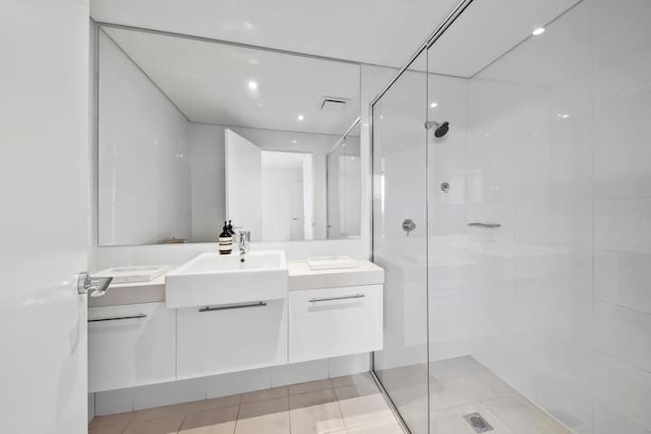 • Fungua mpango wa kuishi na makochi ya ngozi yenye starehe, eneo la kulia chakula na jiko lenye vifaa kamili