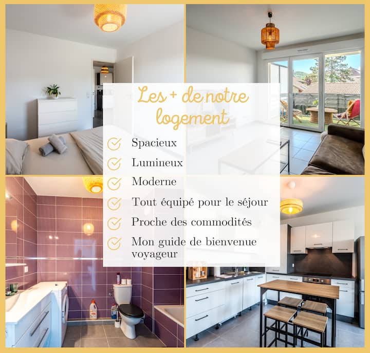 → FLETI, iliyo na samani kamili na vifaa, ujenzi wa kisasa, wa hivi karibuni na bora. Eneo bora kwa ajili ya likizo yako au safari ya kibiashara. Eneo lake hukuruhusu kusafiri katika BONS-EN-CHABLAIS kwa urahisi sana.
