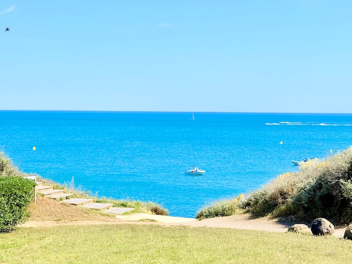 Karibu kwenye studio hii ya nyumba ya mbao iliyojengwa kwenye miamba ya Cap d 'Agde, inayotoa mandhari maridadi ya Mediterania. Ikiwa katika makazi tulivu na salama, malazi haya angavu ni bora kwa ajili ya kukaa kama wanandoa, mtu binafsi au familia na watoto.