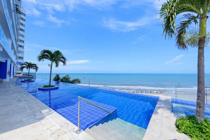 Apto Mpya ya Ufukweni yenye Bwawa, Chumba cha mazoezi, Jacuzzi