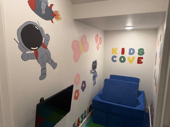 • Bonasi ya "Kids ’Cove"-hakuna wazazi wanaoruhusiwa na Televisheni mahiri na mito ya sakafu (watoto WANAPENDA sehemu hii)