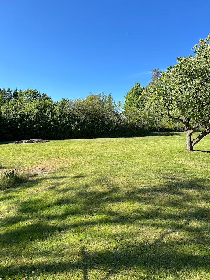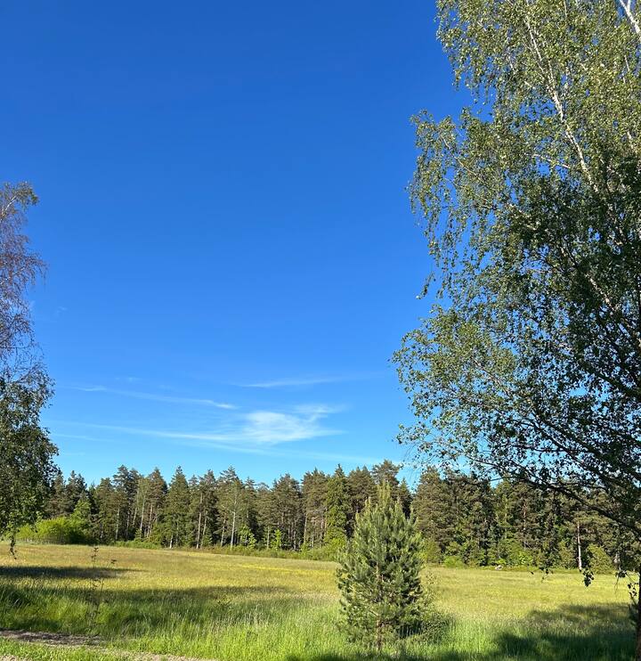 Nyumba ya mbao karibu na msitu na mazingira ya asili.