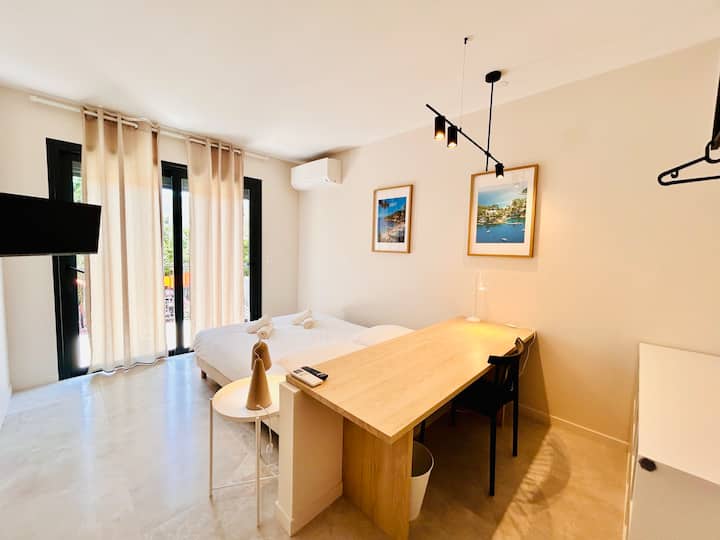 ✨ Ingia kwenye haiba ya Suite Èze, chumba cha kujitegemea kilichoboreshwa chenye baraza kubwa lenye mwonekano wa bustani 🌿, kilicho katika fleti maridadi ya kuishi pamoja dakika 2 tu kutoka kwenye Riviera ya Ununuzi 🛍️.