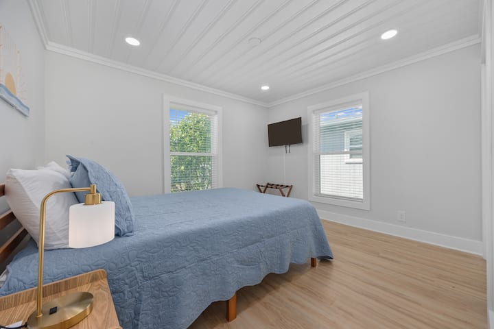 Toka nje ya mlango wako ili ufurahie mwonekano wa bahari na anga za jioni zenye joto kutoka kwenye sitaha iliyofunikwa. Chini ya ghorofa, ua wa pamoja una nafasi kubwa ya kupumzika katika viti vya Adirondack na kufurahia upepo.