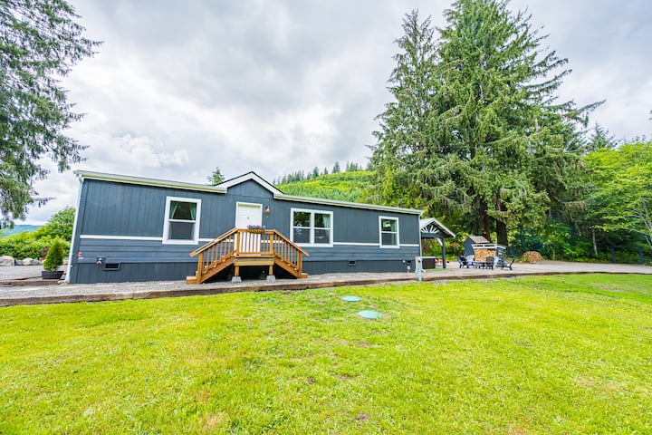Nenda kwenye mapumziko haya ya starehe ya vyumba 3 vya kulala kwenye Mto wa Sol Duc, kituo chako kizuri cha kuchunguza Hifadhi ya Kitaifa ya Olimpiki. Pumzika kwenye beseni la maji moto, pumzika kwenye sitaha ya kibinafsi ya kando ya mto au ufurahie s'mores kando ya shimo la moto. Amka ukisikia sauti ya mto na utembee moja kwa moja kutoka mlangoni ili kuvua samaki aina ya steelhead au salmoni (leseni inahitajika). Jasura, starehe na mandhari nzuri yanakusubiri.