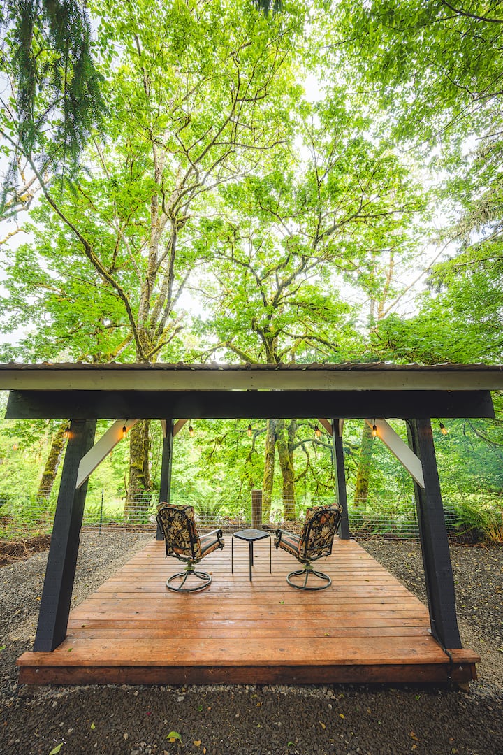 Beseni la maji moto la Viti 7 (Limefunikwa) – Husafishwa kitaalamu baada ya kila ukaaji na halina klorini kwa ngozi nyeti. Pumzika chini ya nyota au mvua nyepesi ya jioni ya Pacific Northwest.