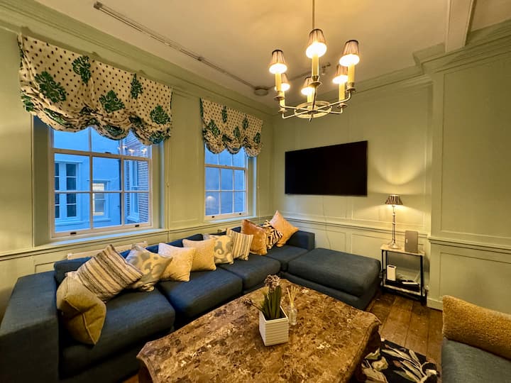 Nyumba hii ya ajabu, iliyokarabatiwa hivi karibuni yenye umri wa miaka 350 ya nyumba ya mjini yenye nafasi kubwa inachanganya eneo kuu la kushangaza, pamoja na usanifu nadra wa kihistoria na starehe ya kisasa. Nyumba hii iliyorejeshwa ya futi za mraba 3000 inaonyesha uzuri wa kipindi na bora ya zamani. Wi-Fi yenye kasi kubwa, sebule 2, chumba cha kulia chakula, vyumba 4 vya kulala vyenye vitanda vyenye starehe. Hakuna upangishaji wa kawaida!