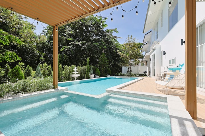 Vila ya Kifahari ya Whitewood yenye bwawa na vyumba 5 vya kulala kwa ajili ya makundi