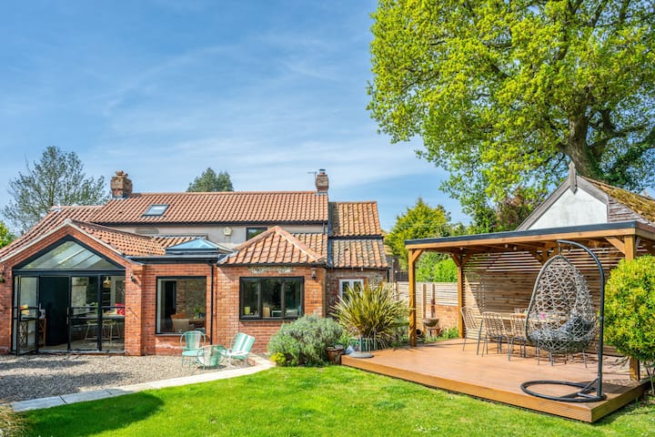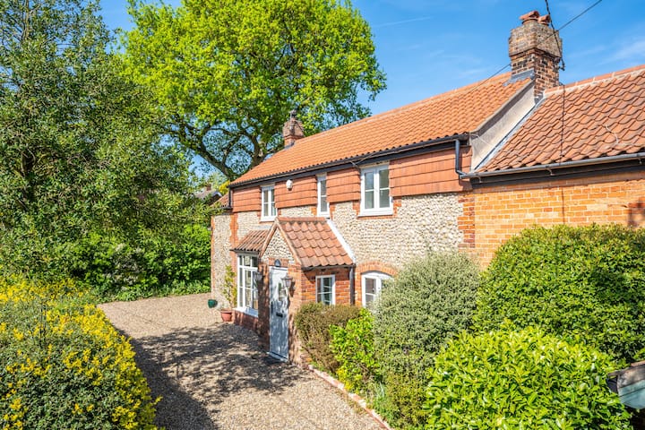 Nyumba ya kifahari ya matofali na flint, Holly Cottage ni ya kisasa na ina oodles za sehemu. Ndani na nje - haitavunjika moyo. Kitovu cha nyumba ni mwanga wake mpana na jiko /mlo wenye hewa ambao unamwagika kwenye bustani iliyofungwa nyuma, kupitia milango ya Kifaransa, kwenye eneo la kupumzika na kula la nje - ni salama kwa watoto na mbwa kucheza kwa usalama wakati unapika dhoruba katika jiko lililo na vifaa vya kutosha. Chumba cha kukaa kina mvuto wa starehe, pamoja na jiko lake la kustarehesha la kuni, viti vya kutosha na televisheni mahiri, pamoja na kuna eneo jingine la kukaa karibu na moto wa mapambo katika ukumbi wa mlango na dawati la kufanya kazi kutoka nyumbani, pamoja na snug nje kidogo ya sebule, na sofa kwa ajili ya amani kamili na utulivu. Ghorofa ya chini pia ina chumba cha kulala mara mbili - bora kwa wageni wazee au wale walio na matatizo ya kutembea na chumba cha kuogea karibu. Kwenye ghorofa ya kwanza kuna vyumba viwili vya kulala vya kupendeza; Mwalimu ana kitanda cha ukubwa wa kifalme na chumba cha kulala kilicho na bafu na bafu tofauti na chumba cha watu wawili kina matumizi ya chumba cha kuogea cha familia. Kukiwa na maegesho mengi ya magari manne kwenye njia ya gari, kutembea kwa dakika moja kwenda kwenye baa ya eneo husika kutoka upande wa kushoto wa mlango wa mbele na kijani kibichi na bwawa la kijiji upande wa kulia, shimo hili la bolthole halikuweza kuwa sehemu bora zaidi ya kujificha ya Norfolk!