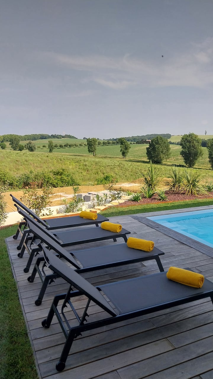 Nyumba mpya yenye kiyoyozi, bwawa lenye joto