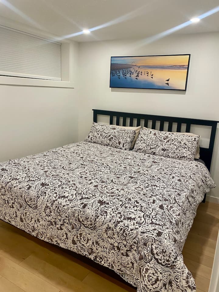 Chumba cha chini chenye kitanda cha king cha jiji la ndani
