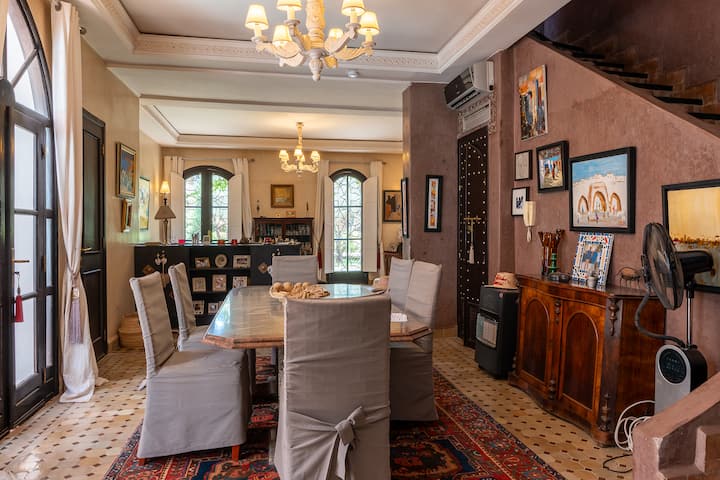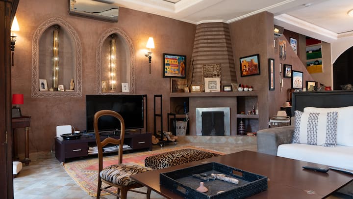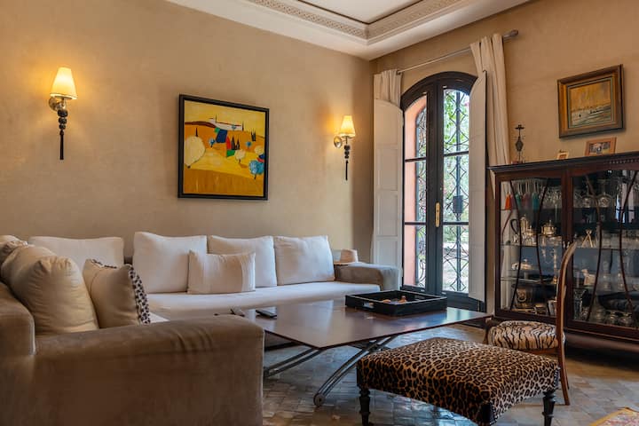 Iliyoundwa kama mapumziko ya amani, riad inazunguka baraza angavu iliyo na bwawa🏊♀️, sebule ya Moroko, chumba cha kulia na jiko lililo na vifaa.