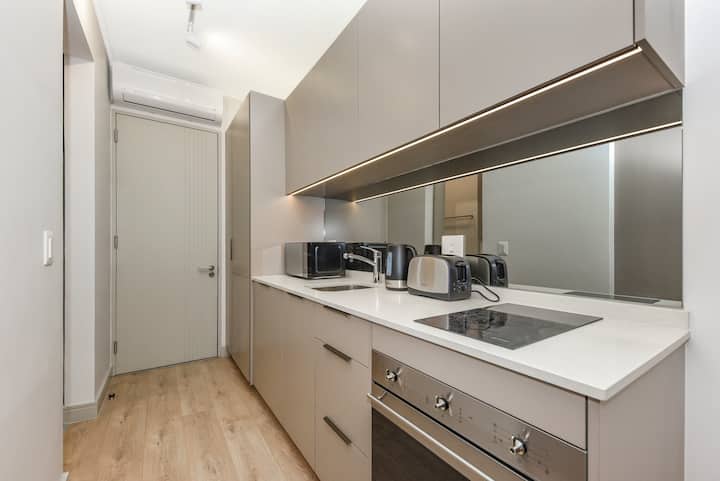 Ingia kwenye patakatifu palipobuniwa ili kufurahisha kila hisia. Chumba chako cha kupikia, kilichoteuliwa vizuri na kilicho na vifaa kamili, kinakualika uunde-kuanzia bagel iliyochomwa hivi karibuni na kahawa yako ya asubuhi hadi chakula cha jioni kilichotengenezwa kwa uangalifu kwa kasi yako mwenyewe. Au, hali inapotokea, agiza tu chakula unachokipenda kwenye Uber Eats na uruhusu jiji liwe bora zaidi kwako.