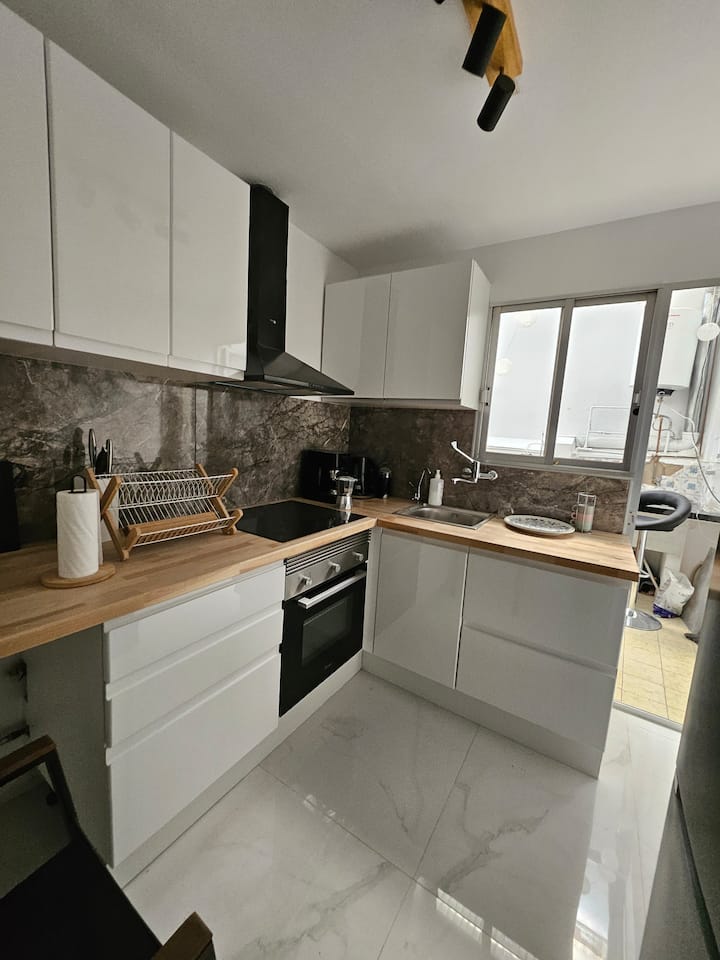Mimi ni Oksana, mwenyeji wako, unakaribishwa sana kwangu. Iwe unataka kupumzika, kufanya kazi au kugundua Uhispania, nitafurahi ikiwa utafanya nyumba yangu iwe nyumbani kwako. Utaishi kwenye ghorofa ya kwanza wakati mimi ninaishi kwenye ghorofa ya chini na paka wangu wanne wapendwa. Tunashiriki mashine ya kufulia na baraza. Vinginevyo, ningependa kuandamana nawe milimani au ufukweni au nikuache peke yako.