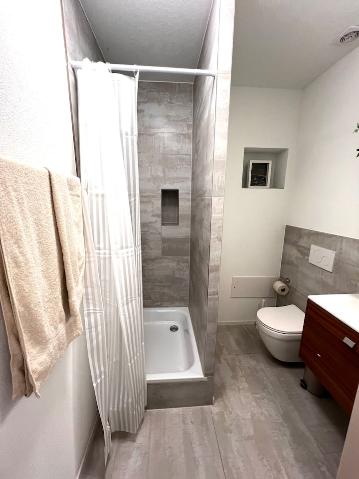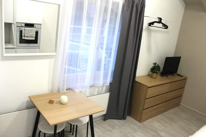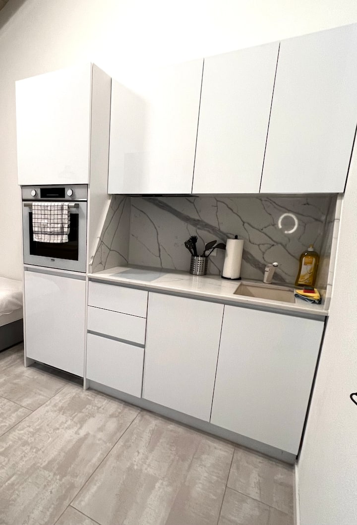 Studio ya Kisasa yenye Bafu, Jiko na Maegesho