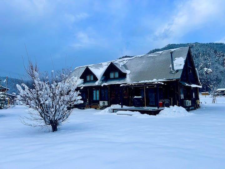 Nyumba ya wageni iko katika eneo tulivu mbali kidogo na jiji na unaweza kufurahia polepole mazingira ya asili ya msimu, hewa safi, anga lenye nyota na mandhari ya theluji.