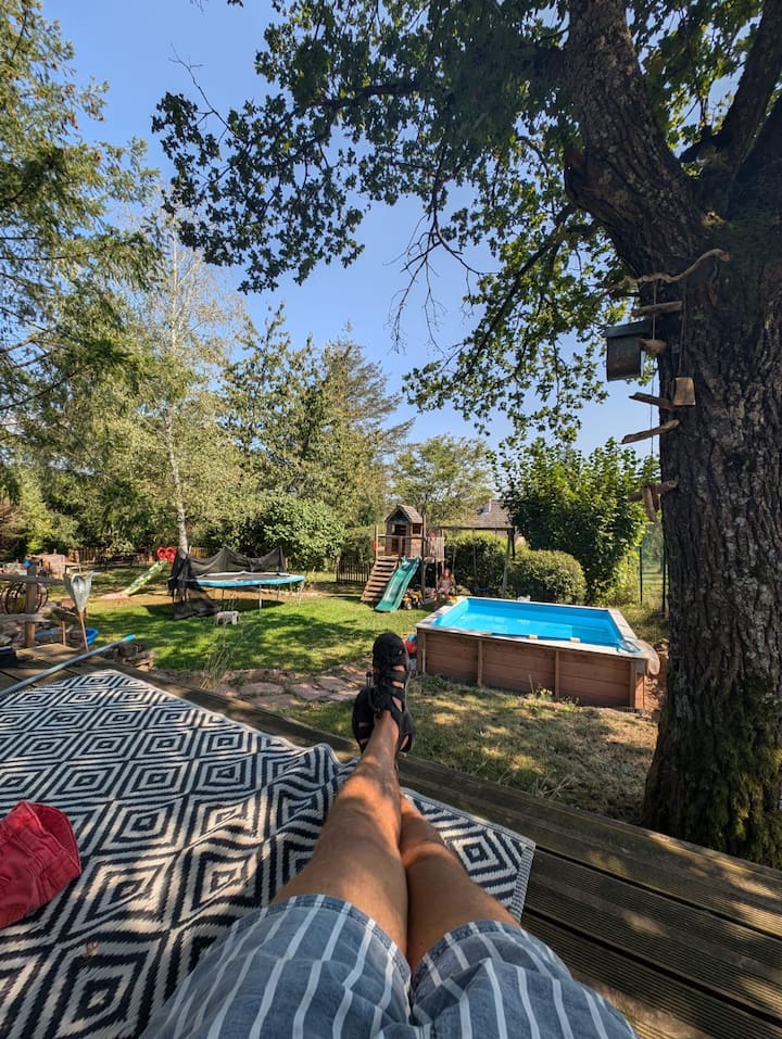 Nusu kati ya Strasbourg na Colmar, dakika 10 tu kutoka Barabara ya Mvinyo, nyumba yetu ya mapumziko inakukaribisha katika mazingira ya kipekee, kwenye mlango wa Val de Villé, chini ya milima ya Vosges. Vyumba 3 vya kulala, sebule kubwa, bustani yenye miti, matuta 2 yanayotazama kusini, uwanja wa michezo, bwawa dogo la kuogelea, bustani ya mboga, mandhari yasiyozuiwa... Mahali pazuri pa kupumzika na familia. Vijijini na vya kisasa, karibu na mazingira ya asili, matembezi marefu, urithi wa eneo husika na vijiji vya kawaida.