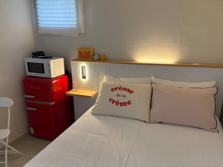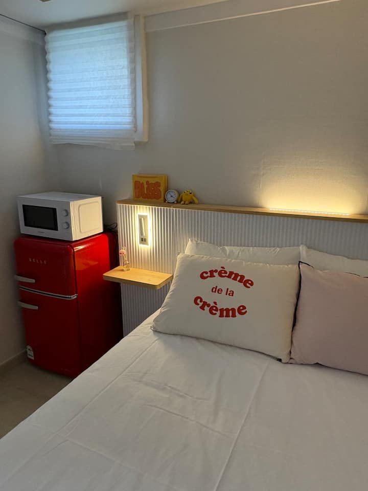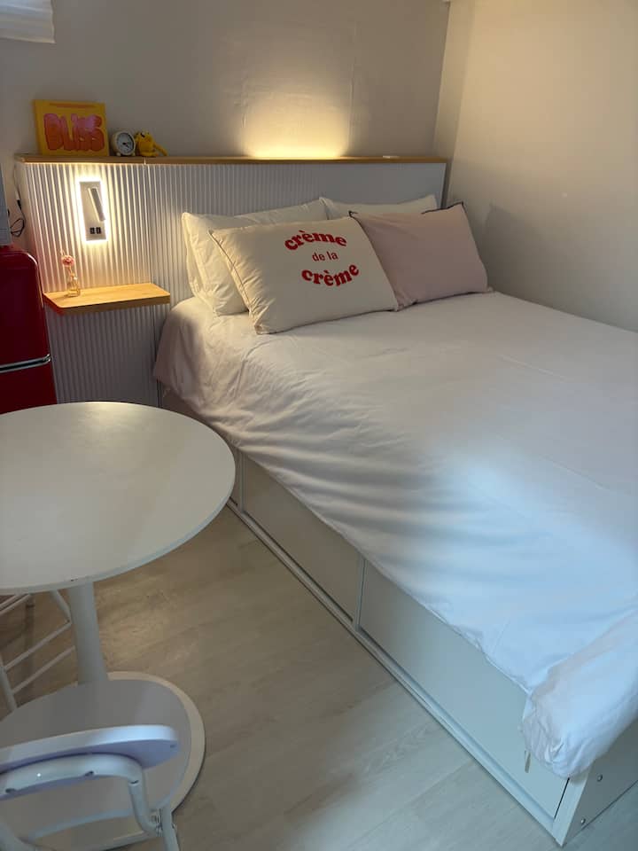 Cute|Private Bathroom|Airport Bus, Subway 5 minutes|Myeong-dong, Dongdaemun, Seongsu, Hongdae 20-35 minutes|Free Dryer, Mineral Water, Instant Noodles