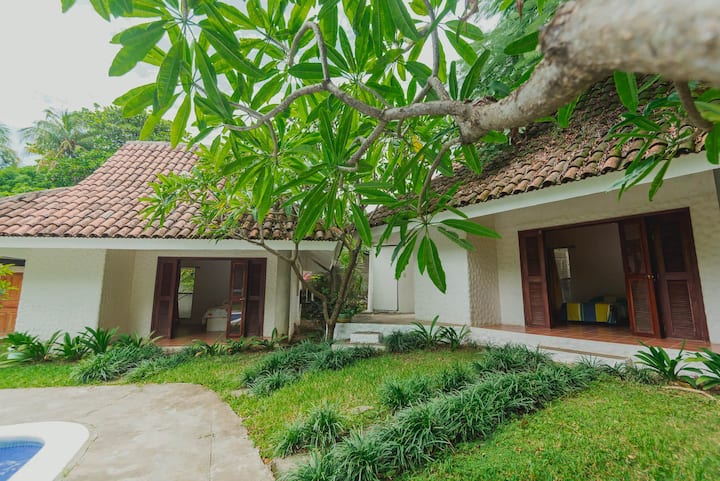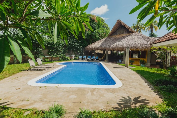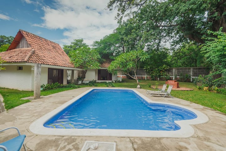 Casa Car-Mar ni nyumba ya familia yenye vyumba sita vya kulala, kila kimoja kikiwa na kiyoyozi, bafu la kujitegemea na makabati. Furahia eneo kubwa la kijamii, ikiwemo jiko lenye vifaa kamili, eneo la kulia chakula, sebule, nyundo za bembea na bwawa la kuburudisha lenye jiko la kuchomea nyama. Pia ina nyumba mbili zisizo na ghorofa na maegesho ya magari matatu. Ingawa nyumba ni ya zamani, imetunzwa kwa upendo na kuboreshwa kila wakati kwa ajili ya starehe zaidi. Inafaa kwa ajili ya kupumzika na kufurahia pamoja na familia!